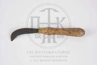Μαχαιρίδιο κυρτό δρεπανοειδές με ξύλινη λαβή, μεταξύ της ξύλινης λαβής και της λεπίδας δακτυλίδι χαλκού