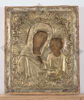 Theotokos, Christ, blessing. Metal revetment, floral decoration